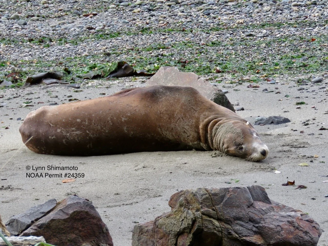 Seal Sitters requested a health assessment from a marine mammal veterinarian. Dr Stephanie arrived just as the sea lion went into the water, but after volunteers shared photos and descriptions, Dr Stephanie agreed that the animal was possibly suffering from uro-genital cancer or leptospirosis.